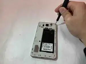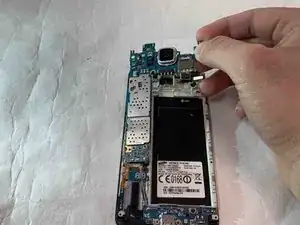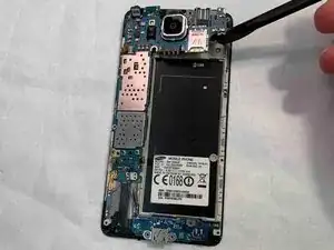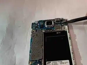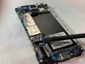 С помощью лопатки подденьте материнскую плату и снимите её с задней части корпуса телефона.