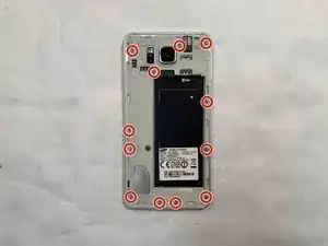Используя крестовую отвертку Phillips #00, выкрутите и отложите в сторону двенадцать винтов длиной 3.0 мм, которые фиксируют заднюю панель к основному корпусу телефона.