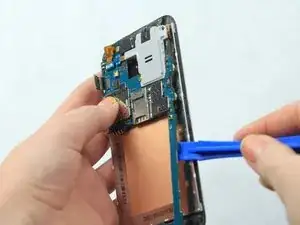 Используйте ноготь или плоский инструмент, чтобы поддеть заднюю крышку.