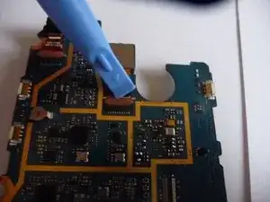 Используйте пластиковый инструмент для открытия, чтобы отключить заднюю камеру от материнской платы.