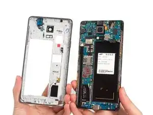 Перед снятием материнской платы необходимо снять ЖК-дисплей. Более подробные сведения см. в замене ЖК-дисплея Samsung Galaxy Note 4.
