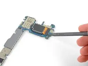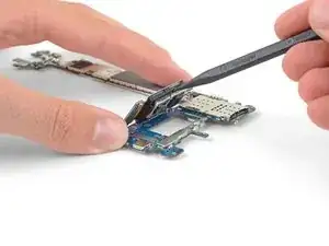 С помощью наконечника лопатки подденьте разъём задней камеры и вытащите его прямо вверх из материнской платы.