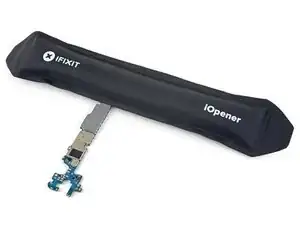 Используйте тепловую пушку или фен либо приложите нагретый iOpener к левой стороне задней панели на три минуты, чтобы размягчить клей под ней.