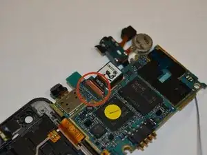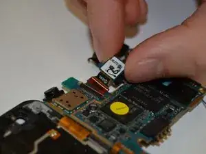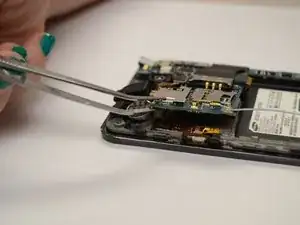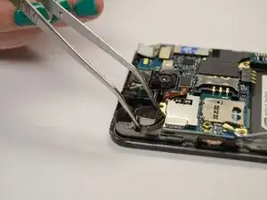 С помощью пинцета плотно захватите вибромотор и оторвите его от верхней панели с достаточной силой, чтобы разорвать клеевой шов.