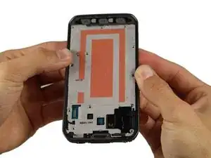 Сдвиньте вверх со стороны задней панели телефона (где должна быть батарея), чтобы выжать большую серую деталь.