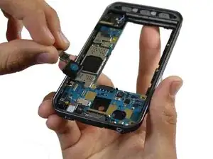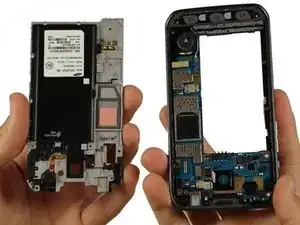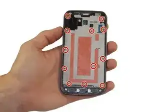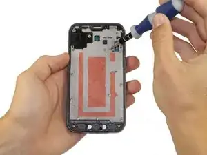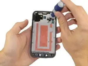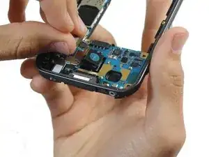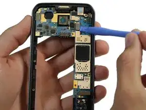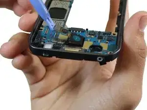 Используйте палец или пластиковый инструмент для вскрытия, чтобы отсоединить заднюю камеру от материнской платы.