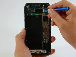 Используйте пластиковый инструмент, чтобы отсоединить разъём задней камеры от материнской платы.