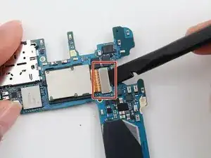 Отсоедините гибкий кабель фронтальной камеры от материнской платы, используя плоский конец лопатки.