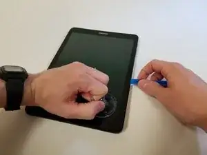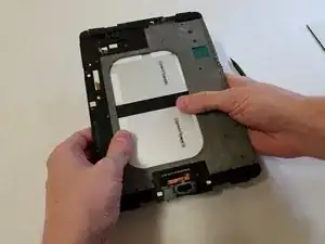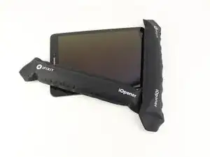 Чтобы размягчить клей, удерживающий планшет, нагрейте края стеклянной панели с помощью нагретого iOpener на краю устройства. В качестве альтернативы можно использовать тепловую пушку, чтобы ослабить клей.