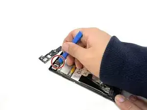 Используйте открывательный инструмент для освобождения разъёма задней камеры.