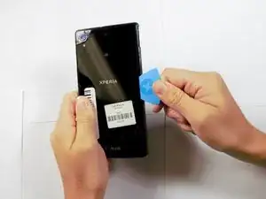 Вставьте медиатор для вскрытия в щель между корпусом телефона и задней крышкой.