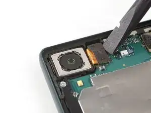Используйте лопатку, чтобы приподнять и отключить шлейф задней камеры.