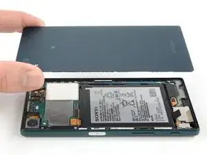 Клей Xperia Z5 довольно слабый, и заднее стекло можно удалить без использования лопатки. Если у вас возникают трудности, вы можете посмотреть процедуру открытия Xperia Z4.