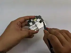 С помощью наклонного пинцета отсоедините заднюю камеру от материнской платы.