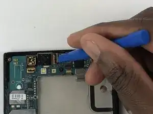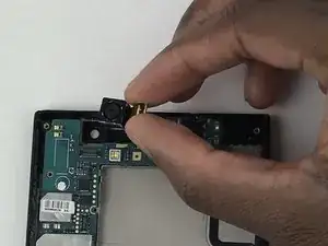 С помощью пластиковой лопатки отстегните камеру от материнской платы.