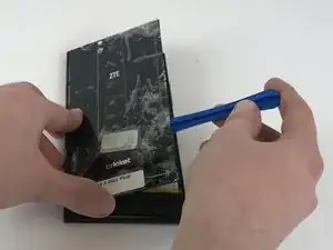 После нагрева телефона используйте с обеих сторон синюю пластиковую лопатку для поддевания корпуса.