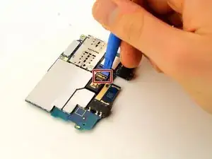 Подденьте пластиковым инструментом материнскую плату, расположенную в верхней части телефона.
