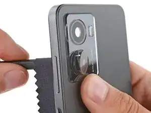 В этом шаге показано, как снять и перенести два защитных стекла задних объективов камеры.