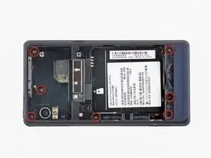 Удалите семь винтов Torx T5 длиной 5.5 мм, крепящих заднюю крышку к внутреннему корпусу.