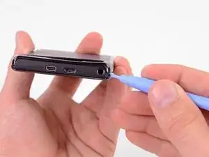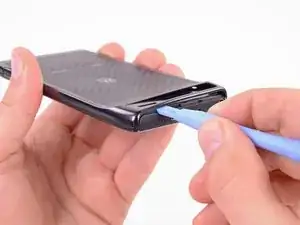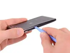 Вставьте пластиковый инструмент для открытия между задней крышкой и задним корпусом на нижнем левом краю задней крышки.