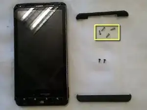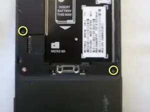 ИНСТРУКЦИЯ: Снимите два чёрных винта с задней части телефона.