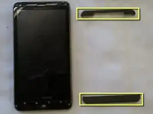 Две пластиковые заглушки защёлкиваются на корпусе телефона. Они расположены вверху и внизу телефона.