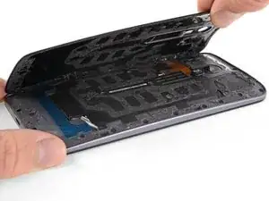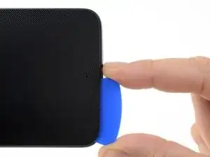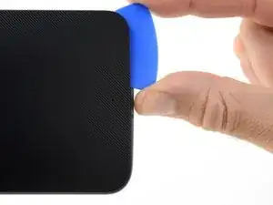 Проведите инструментом для открытия вдоль края телефона, чтобы разрезать клей задней крышки.