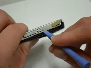 Вставьте пластиковый инструмент для открытия между передней и задней панелями нижней части устройства.