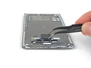 С помощью пинцета удалите как можно больше старого клея. Затем очистите оставшийся клей 90% изопропиловым спиртом и безворсовой салфеткой.