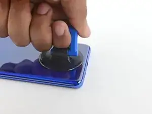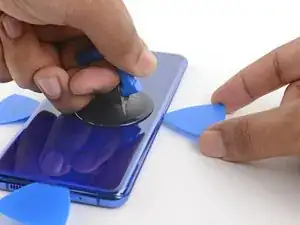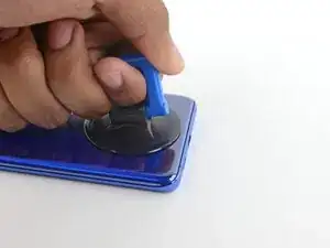 Тяните за присоску сильной, равномерной силой, чтобы создать зазор между задней крышкой и рамкой.