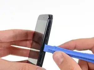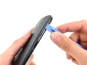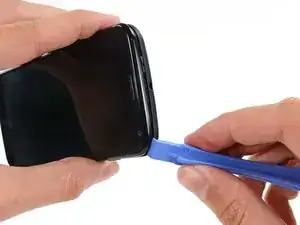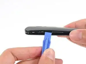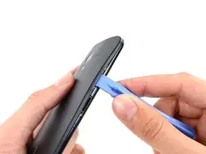 Вставьте пластиковый инструмент для вскрытия в шов между передней и задней крышками рядом с гнездом для SIM-карты.