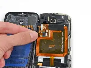 Возможно, катушка NFC останется прочно приклеенной к задней крышке. В этом случае прекратите отрыв крышки и снова примените нагретый iOpener к задней крышке.