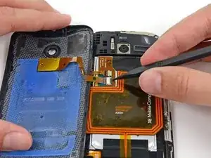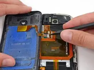 Не отделяйте заднюю крышку полностью; она всё ещё соединена с телефоном кабелем подсветки камеры.