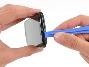 На следующих шагах вы освободите защёлки, удерживающие корпуса телефона вместе. Однако задняя крышка также закреплена клеевой прокладкой. После отделения защёлок используйте iOpener, чтобы крышка полностью открылась. Не пытайтесь полностью открыть телефон до ослабления клея.