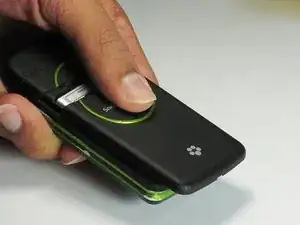 Удерживайте телефон крепко между пальцами, прижимая большим пальцем крышку аккумулятора.