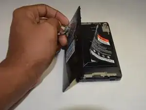 Используя плоскую металлическую лопатку и изогнутую металлическую лопатку, сделайте клин между пластиковой задней крышкой и внутренней рамкой.