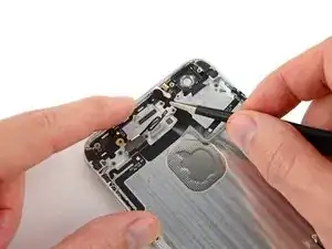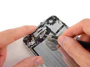 Используйте пинцет, чтобы приподнять и извлечь металлический кронштейн из iPhone.