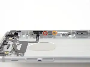 Удалите следующие винты Phillips #00, которые крепят узел разъема Lightning к задней части корпуса: