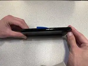 Используйте iOpener или фен, чтобы разогреть край задней панели и размягчить клей под ней.