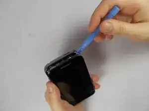 Используйте лопаточку, чтобы оттиснуть заднюю панель от остального телефона. Легче всего начинать с края, ближайшего к экрану.