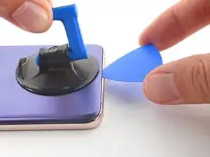 Поднимите заднюю панель с помощью присоски, чтобы образовался небольшой зазор между ней и рамой.