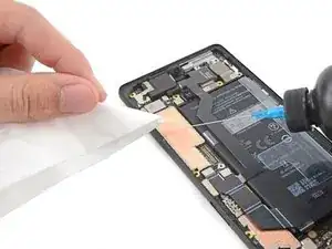 Используйте пинцет, чтобы отогнуть ленту, закрывающую два винта по обеим сторонам порта USB-C.