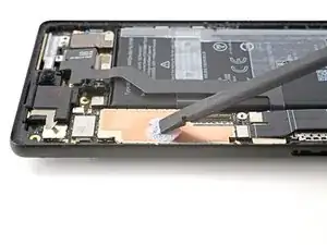 При обратной сборке это хорошее место для включения телефона и проверки всех функций перед окончательным закрытием. Обязательно полностью выключите телефон перед продолжением работ.