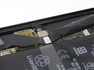 Используйте лопатку, чтобы отключить гибкий кабель дисплея, приподняв разъем прямо вверх из его разъема.