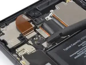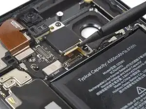 Используйте лопатку, чтобы отключить кабель ультраширокоугольной камеры, поддев разъем вертикально от его гнезда.
