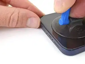 Подтяните присоску вверх с равномерным постоянным давлением, чтобы создать небольшую щель между экраном и корпусом.