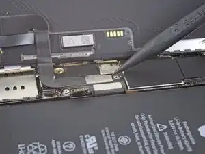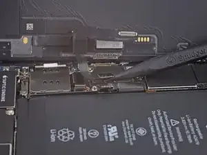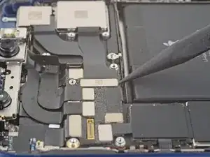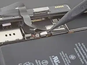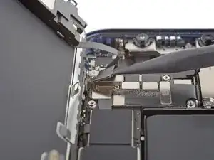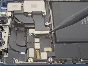 Используйте лопатку или чистый ноготь, чтобы приподнять разъём батареи и отжать его из гнезда на логической плате.