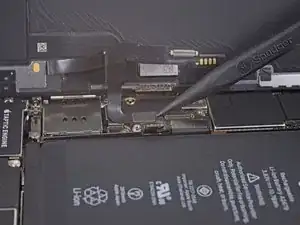 Используйте лопатку или ноготь, чтобы отсоединить разъём кабеля дигитайзера.
