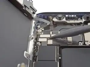 Используйте лопатку или ноготь, чтобы отсоединить разъём кабеля дисплея.