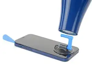 Используйте фен, чтобы нагреть правый торец iPhone (торец с кнопкой питания) в течение 90 секунд или пока экран не станет слегка слишком горячим для прикосновения.